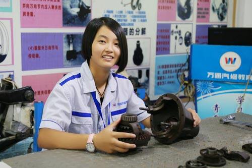 因为父母在广州工作,我想离他们近一点,于是今年3月19号,我来到了广州万通汽车学校。这是爸爸推荐的学校,他说学校有名气,他们同事都知道。虽然班级里就我一个女生,但是在学发动机、底盘等专业课程的时候,我从不含糊,只要认真学习,我也不会比男生差。现在,我也加入了学生会组织部、摄影协会,在努力学技术的同时,我也希望自己能为同学们服务,努力提升自我。