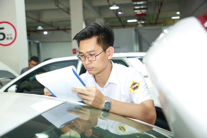 实操考试内容方面,三位老师则告诉我们,此次考试中增加了一些新的车型,比如新能源之类。非事故车鉴定中,时间很紧张,比拼的是团队协作的能力和熟练程度。