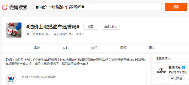 今早“油价上涨燃油车还香吗?”话题登上热搜榜,引发广泛讨论。