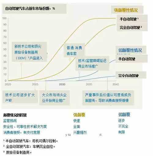 5.一旦技术和监管问题得到解决,2030年销售的新车中15%可能为完全自动驾驶。