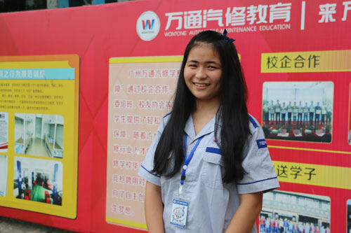 汽检1610班的郭慧敏同学,是广州万通汽车学校的“一枝花”