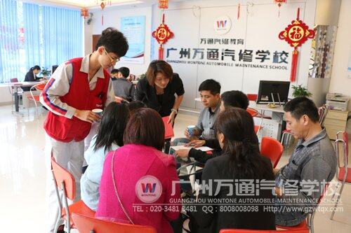 我隔壁的小黑是个老板,他知道我要学汽修,他拍着我的肩膀说:“小白啊,你太有眼光了,学汽修就是对的,你一定要好好学,我这辆宾利维修保养一次都要好几万的,就这么保养一次,几万块就入人家的口袋了,汽修行业是热门行业啊,要不是我事务缠身,我也去学了,我现在跟你说好了,你负责好好学,学成之后,我投资你创业。到时候带你装b,带你飞。”不会吧,这是哪等好事?有人给钱我创业,这小黑是个精明人,要不汽修行业真的好,他才不会那么傻。于是,二话不说我就找较好的汽修职业学校。广州万通汽修学校!网上看到了,让我眼前一亮,我决定来校看看。我一到校,哇塞,好气派,我去的那天新生报名中心可是挤满了人呀!
