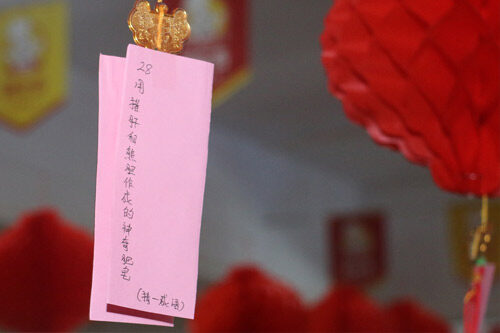 终于到了猜灯谜的环节了,学生们都特别激动。只要猜对谜底,就能拿奖品啦!大家纷纷使出浑身解数,抢占大脑的称号。从用品、人名到成语,题目花样百出……