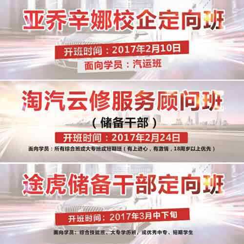 2017年春季,广州万通汽修学校共开设亚乔辛娜定向班/淘汽云修服务顾问班/途虎储备干部定向班/奥斯坦丁合伙人定向班/典典养车校企定向班等,年后5月份前毕业的4个专业共300多名学子工作岗位已经提前敲定,储备干部/店长等定岗培训,让他们的未来拥有了更高的起点。