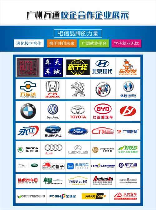 广州万通汽修学校与业内众多拥有高有名度的企业建立了长期产教融合关系,其中包括4S类、连锁美容快修类、维修厂类、互联网+类、改装科技类等上千家优质企业。