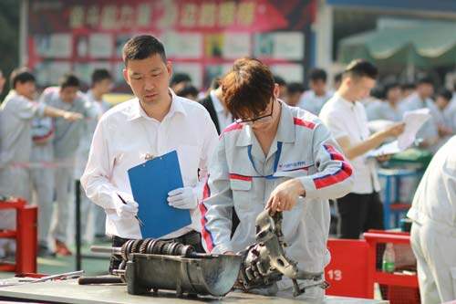 现场,参赛选手专注熟练操作,观战同学热情高涨,咨询家长赞赏有加。看到这些高水准、操作娴熟、为了汽修梦想而努力奋斗的学生,就仿佛看见了汽修行业的未来!加油吧,学汽修的同学们!